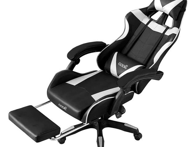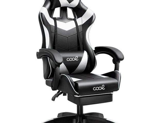 Cadeira Gamer Premium COOL Rest Preta e Branca (Apoio para os Pés)